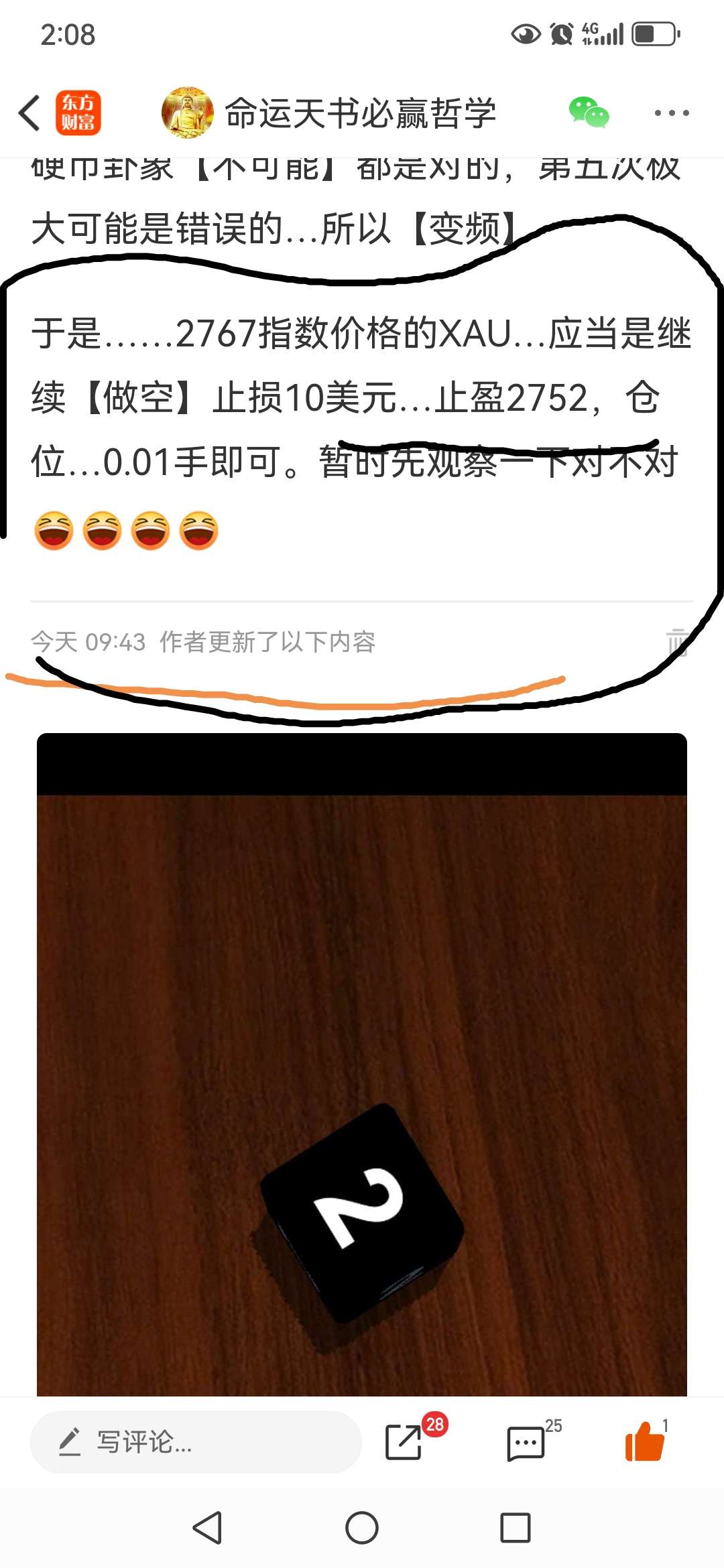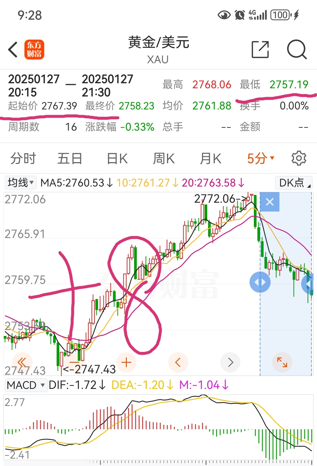 于是我【20:14分】报仇雪恨继续做空XAU2766指数…设定止盈2757…实质指数9:40分达到2753…【所以是盈利8美元】注意看看评论发布动态时间…