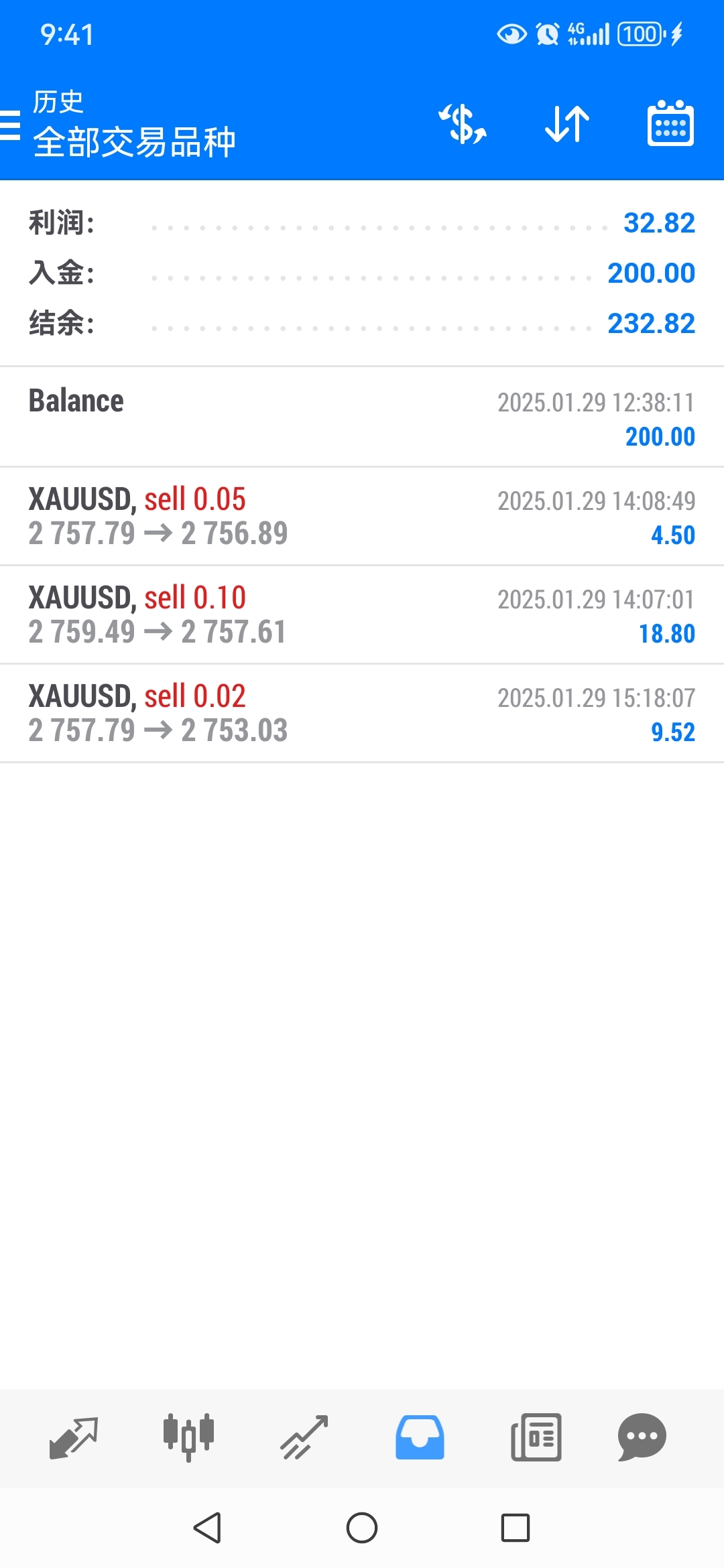 今天入金200美元…刚刚挣了32美元
