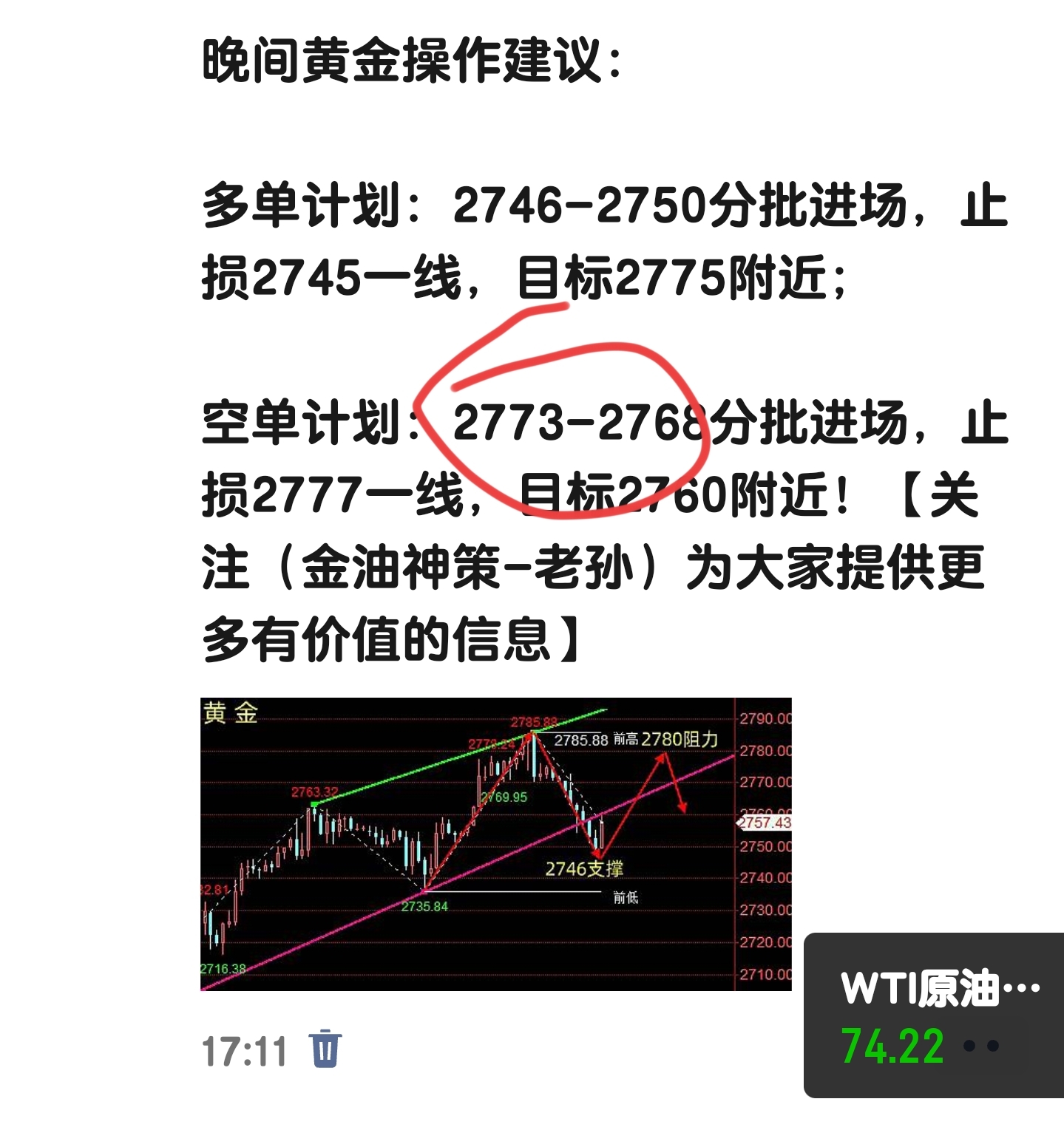 提示:黄金现报2760一线,建议2771附近空单,稳健获11美金出局!