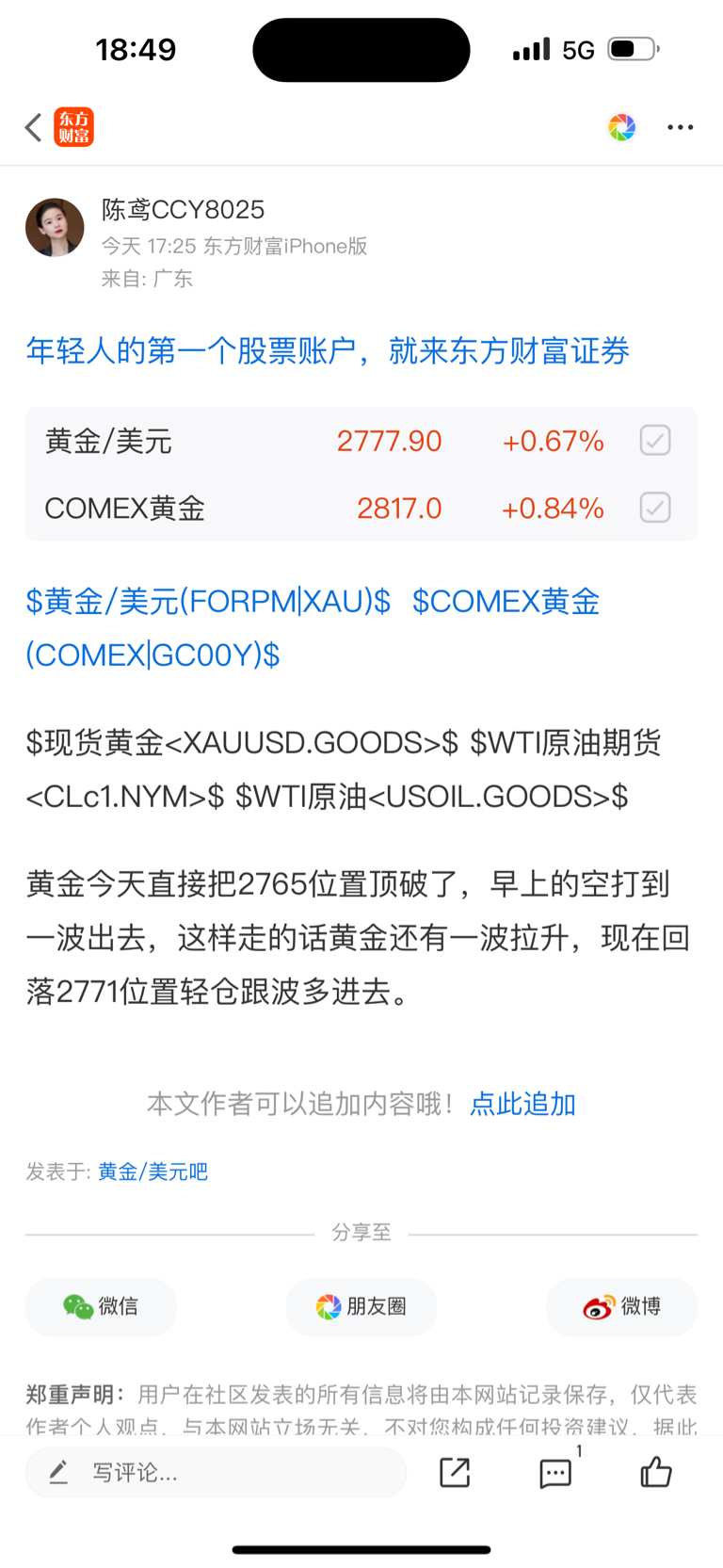 $现货黄金$$WTI原油期货$$WTI原油$黄金第一波确实被打到了防,2771这
