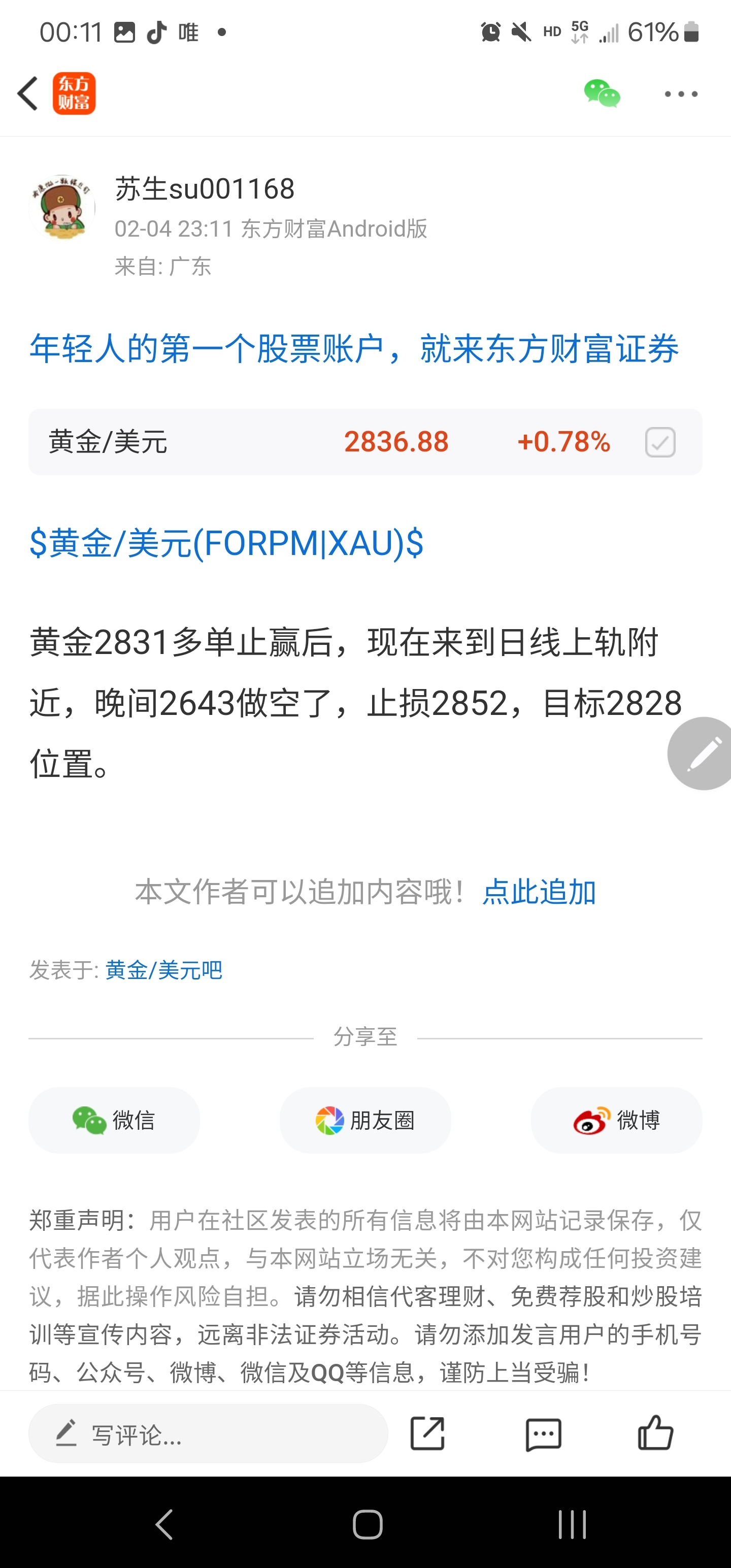 黄金2843做空,下跌2833止赢了,顺利拿下。晚间先多再空完美拿下全部行情,休
