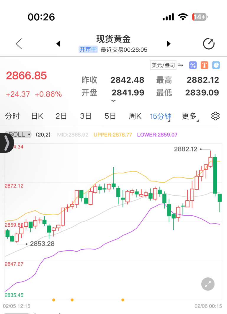 $黄金/美元(FORPM|XAU)$ 2868空单上移后,委托的2881空单精准收米2869,拿下11个点,剩下底仓提损,如果收盘在2858上方,可能还要涨,如果继续回落跌破2855有可能有一波小回调,个人观点。
