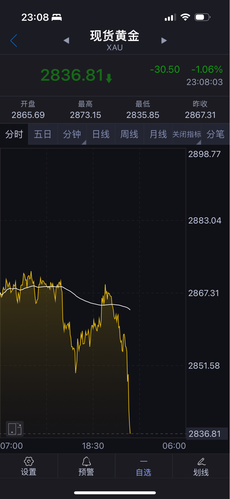黄金2869上中线空