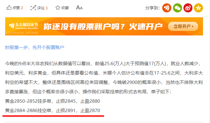 不夸张的说,黄金今晚我们多空都把握了,非农前的2884-2886空单刚才成交进去