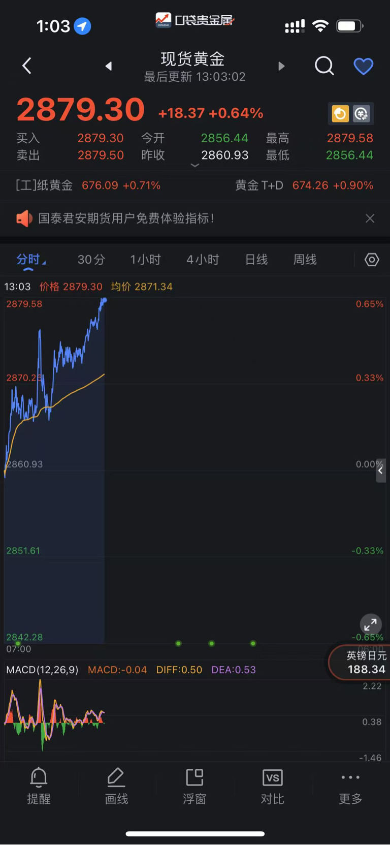 大家中午好、周一黄金2872多单开门红、报价2880附近可以把握好利润离场
