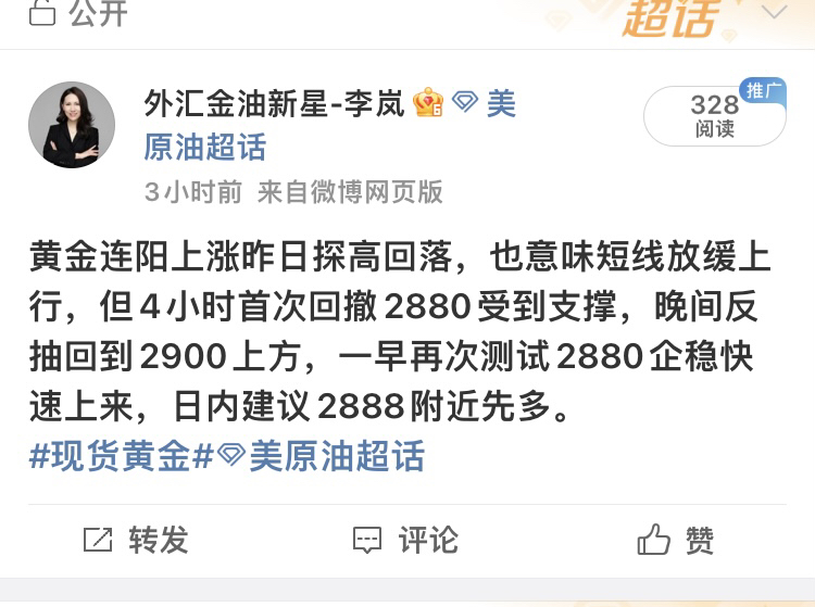 黄金前面上去2894单子没及时出来,现在再次上来2895一线,2889多和288