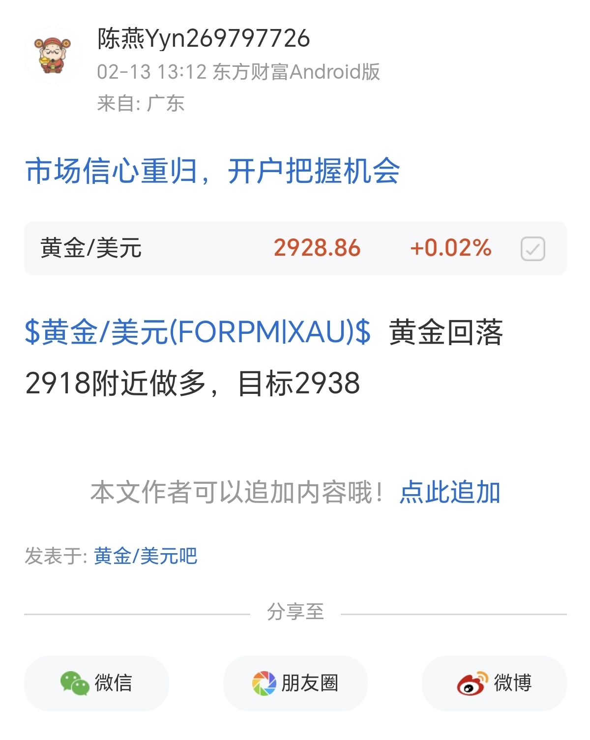 黄金2918多单,回落2907加仓多,到2929收割了
