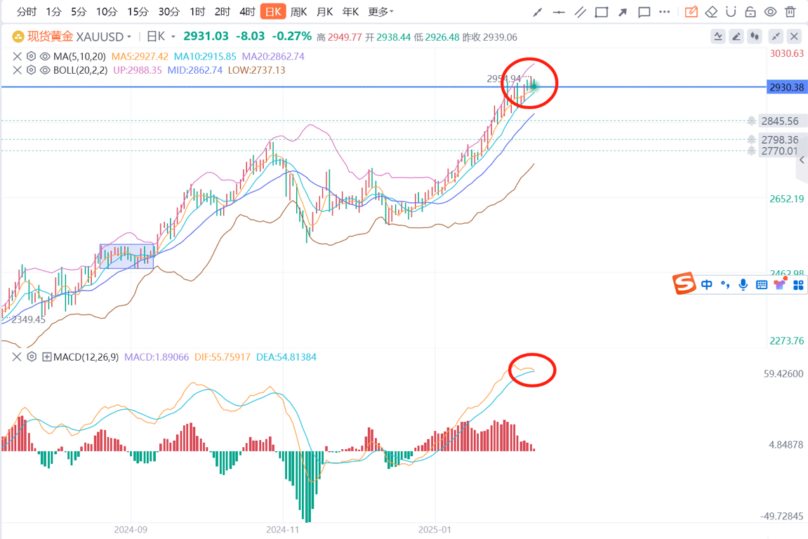 早盘黄金宽幅波动20$、目前保持在2930附近窄幅震荡;目前老戴看法不变,下方关注2925-20支撑、也是日均MA5+MA10重合处