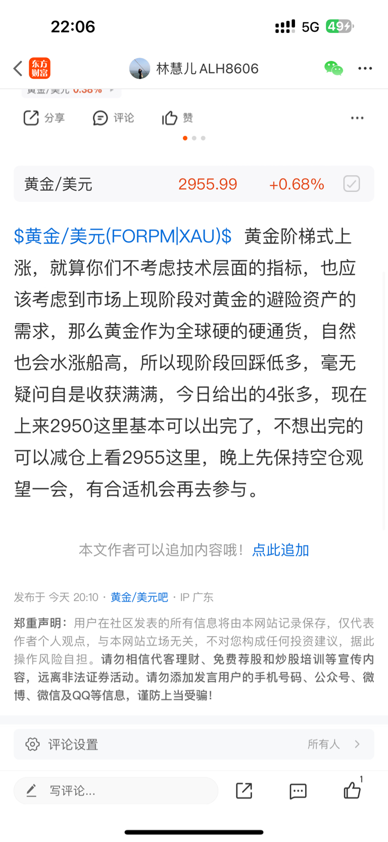 $黄金/美元(FORPM|XAU)$ 黄金又一次刷新高点,做空的先抬走,做多的先fa财,今天行情只要不是做空,闭着眼都有zhuan,前面我也说了先关注2955能否突破,现已突破黄金还有进一步上涨的空间,但也不要去追涨,等待回落一些再去参与,空仓建议在2948附近去参与,先看2960这里。