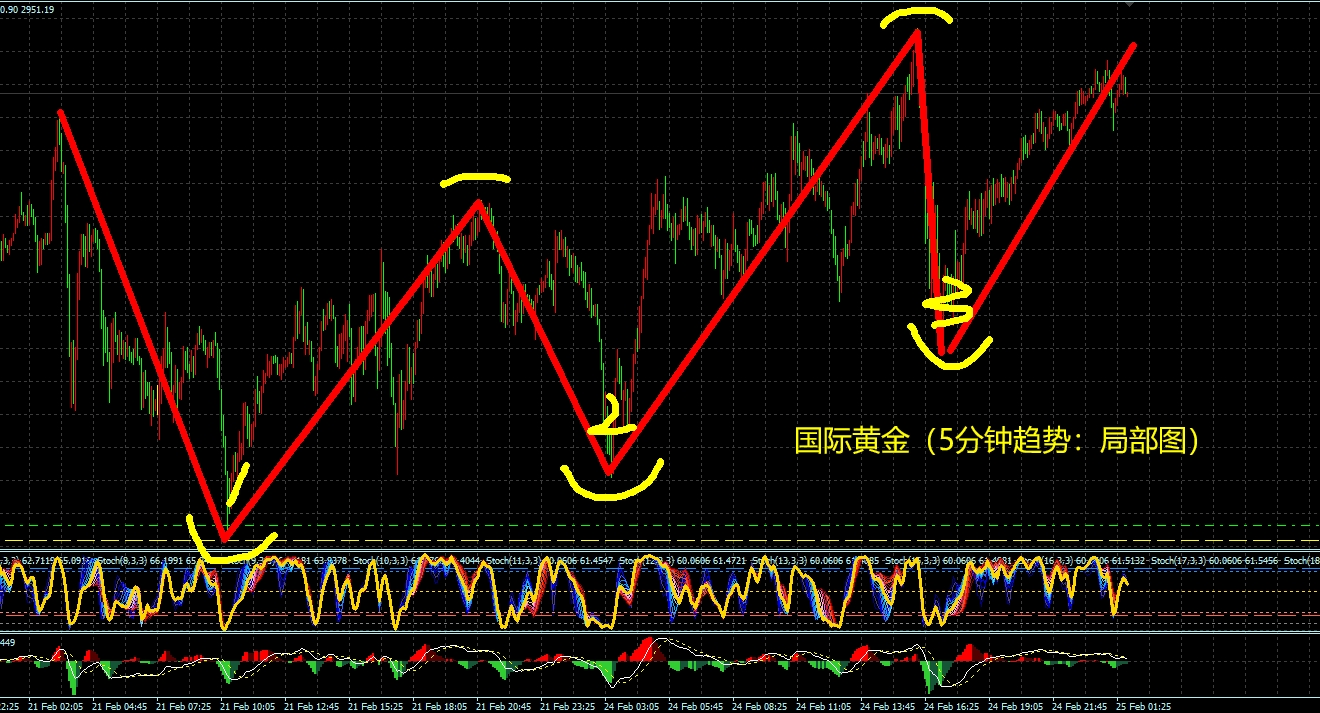 从目前的情况来看,5分钟级别的上涨趋势还在坚守,分水岭2916美元没有破坏,因此方向上仍然以看涨和做涨为主。