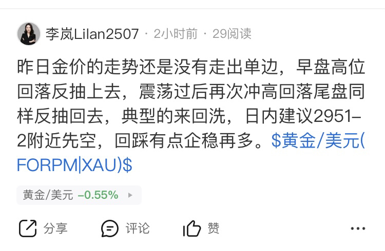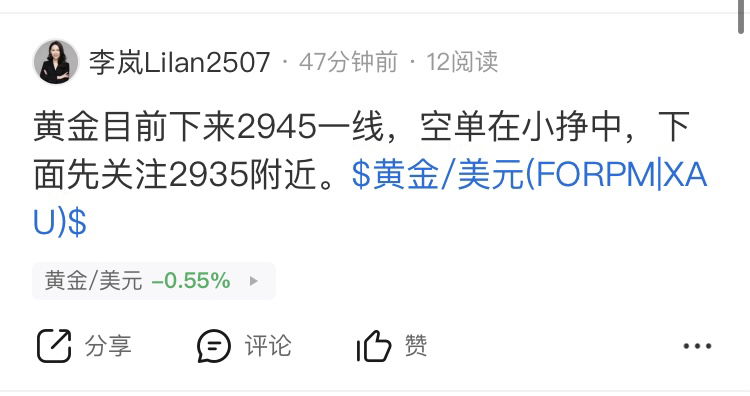 黄金看2935附近到位,2950一线空单下来直接出完就得了,给到机会毫不犹豫的进