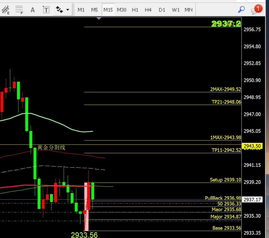 【今日份底部支撑在这里】今日黄金早盘拉升2953后回落至2933,而今日下方的支
