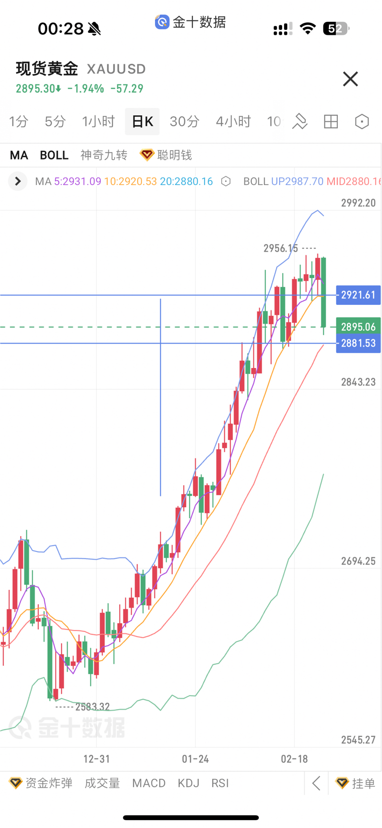 美盘后因地缘政治缓解、机构持续抛售、黄金最低试探2888、单边下跌65$+技术面