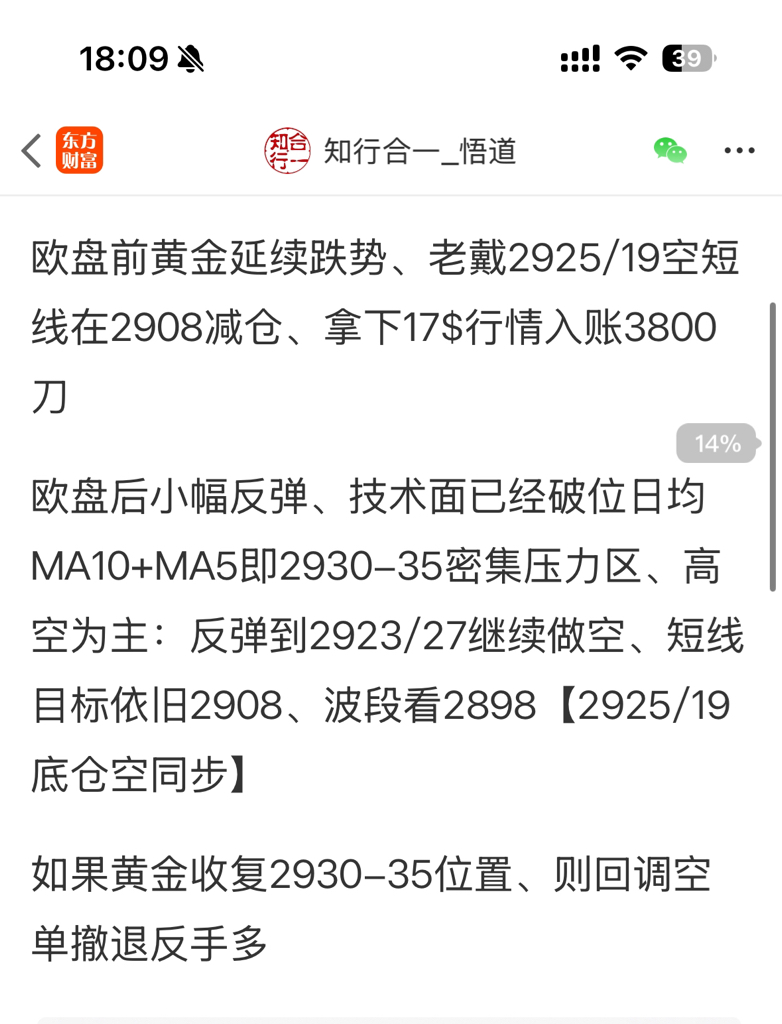白天2925/19空在2908减仓了,拿下17$行情;底仓持有等待2895