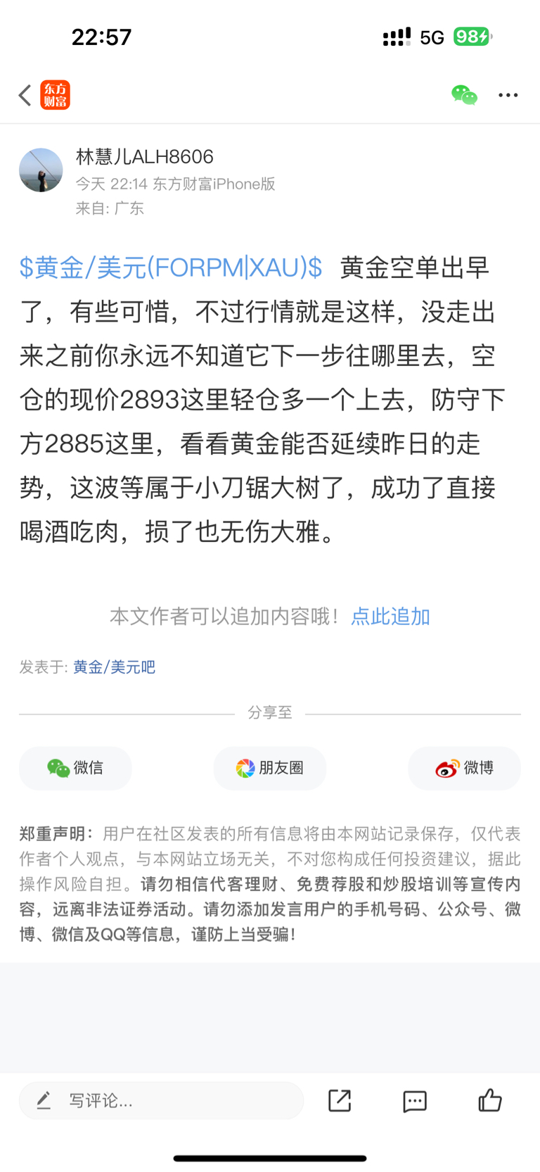 $黄金/美元(FORPM|XAU)$ 不说了,黄金2893的多现在V上来了,轻松11美金是到手了,有跟上的不想拿的直接出完休息了,想持有的做个减仓上看2915这里。