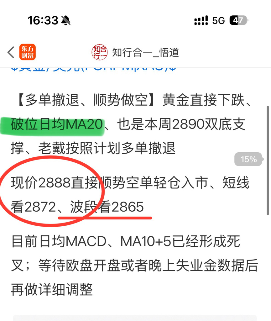 【市场是讲依据、摆事实过程】黄金跌势不减、老戴2888顺势空止盈2872、拿下16$行情、弥补多单损失