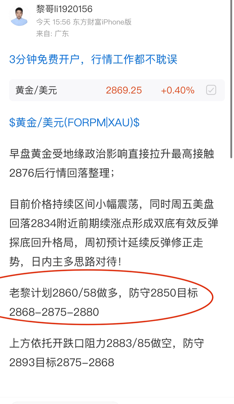 老黎计划2880/82做多,防守2870目标2890-2895-2900