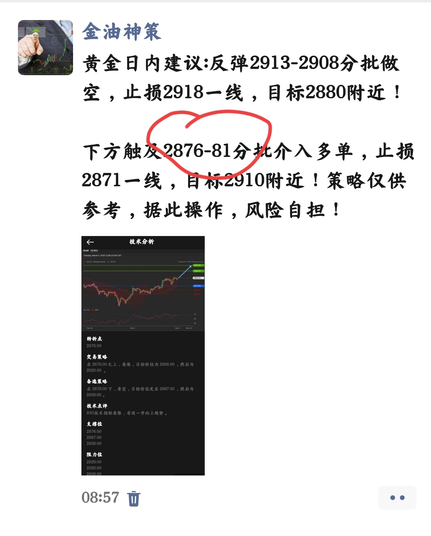 提示:黄金现报2891一线,早间给出2881附近多单,短线斩获10个点减持,中线