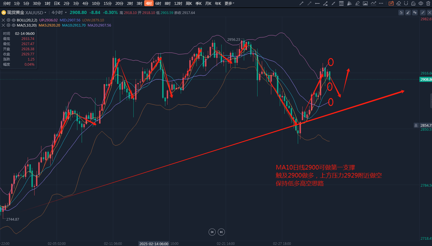 回落2900附近做多入场,止盈目标2910-2920。