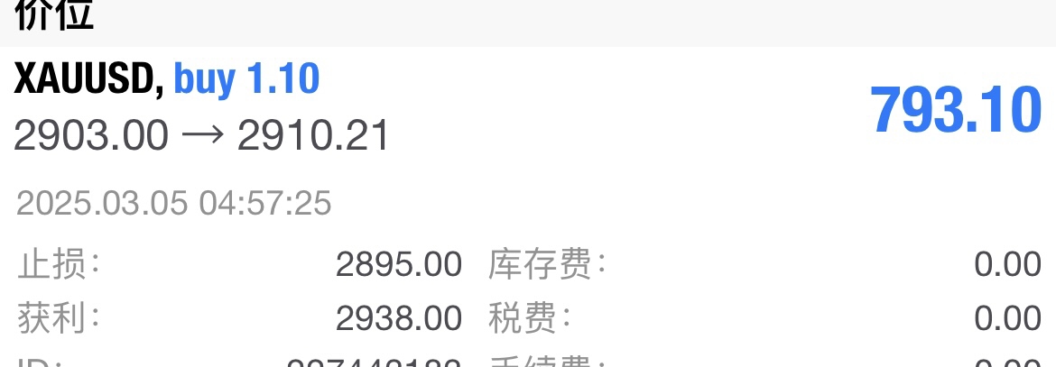 哆单收米,继续持有黄金2903多,现2910,收7点,第一目标抵达,短跑离场,其