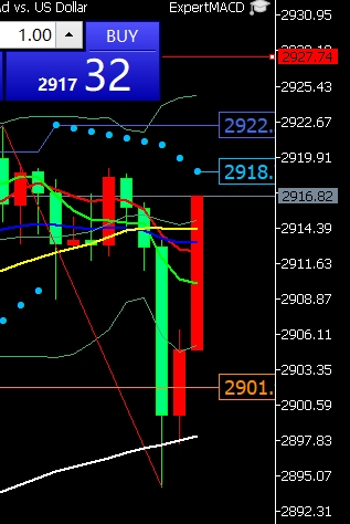 $黄金/美元(FORPM|XAU)$ 黄金现在2916再次做空,2922补仓一次,止损2928,目标2900-2890,下破持有;【策略思路仅供参考、据此操作盈损自担】