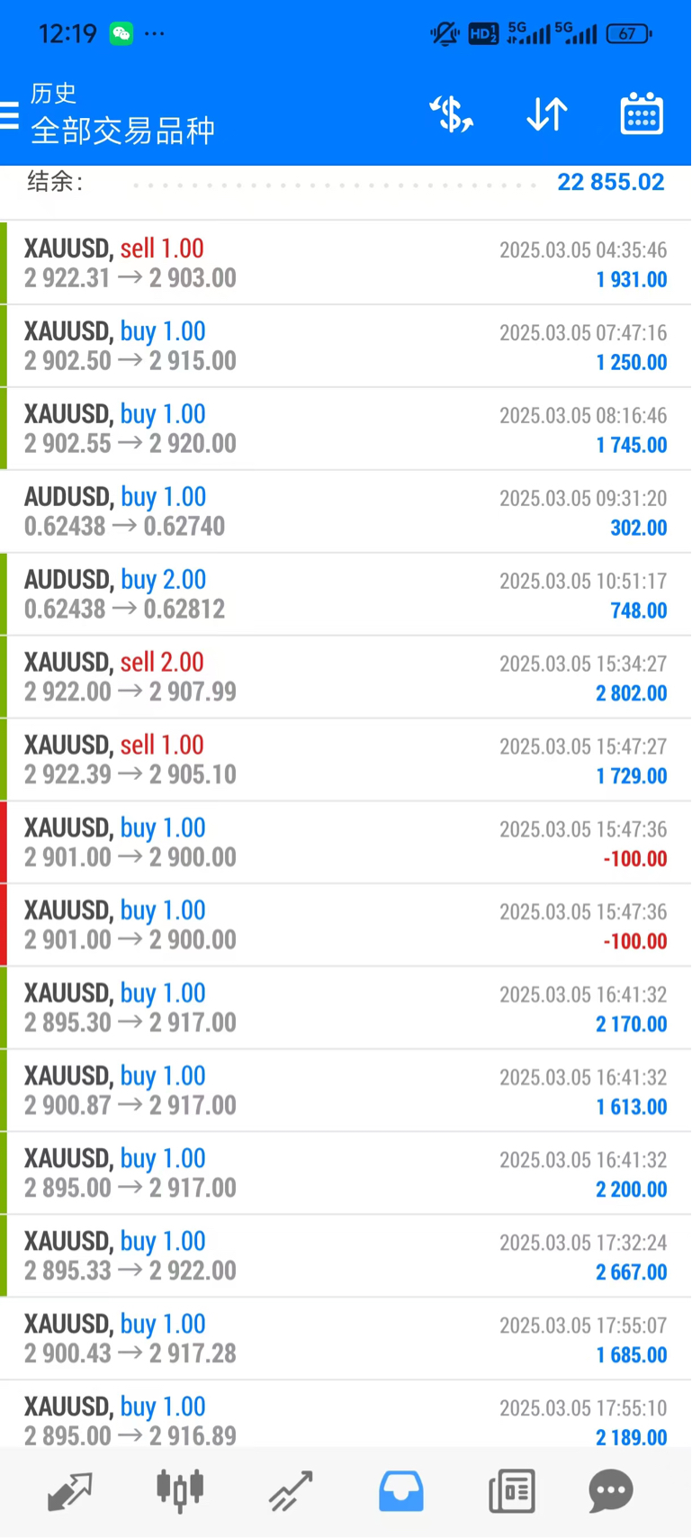 周三黄金+澳美6单5盈1持有,整体入账2.2w$