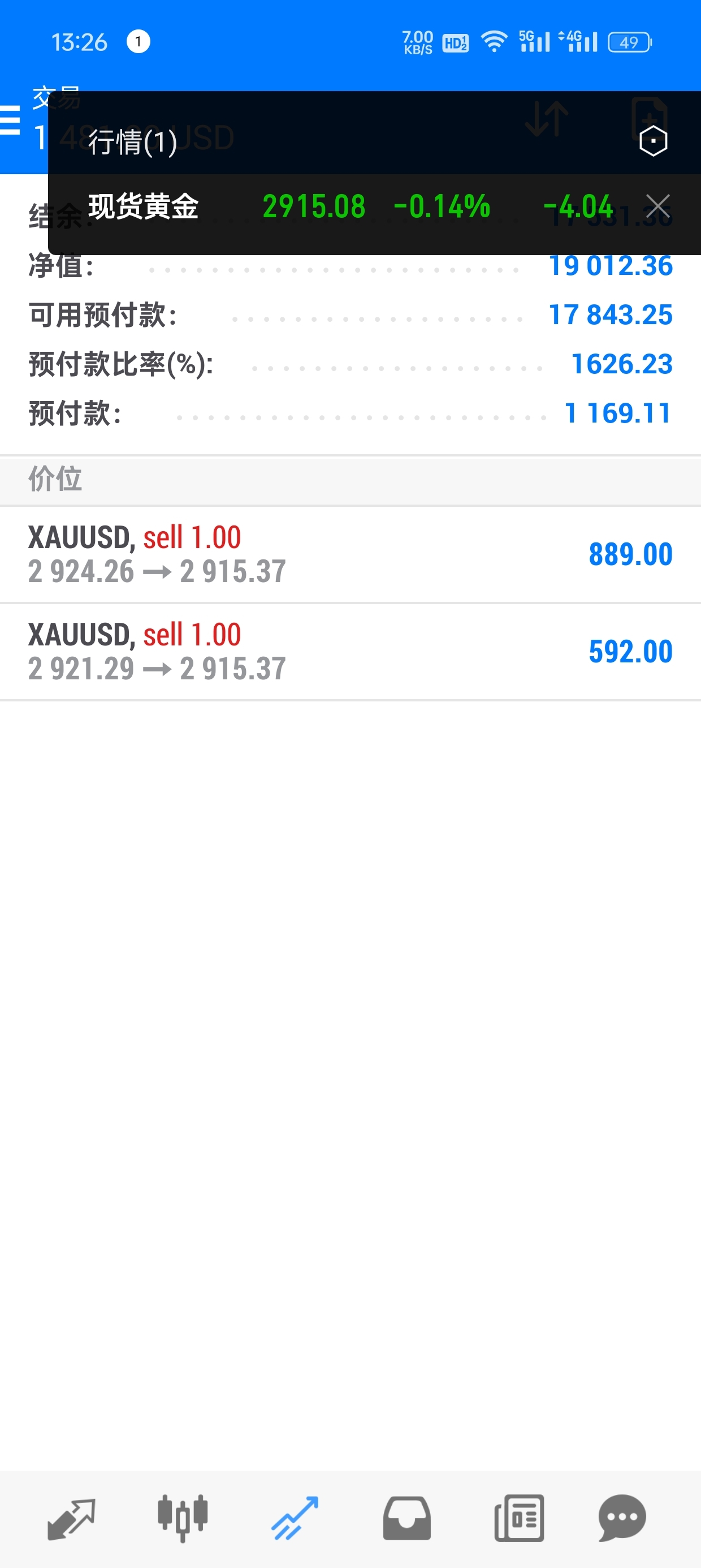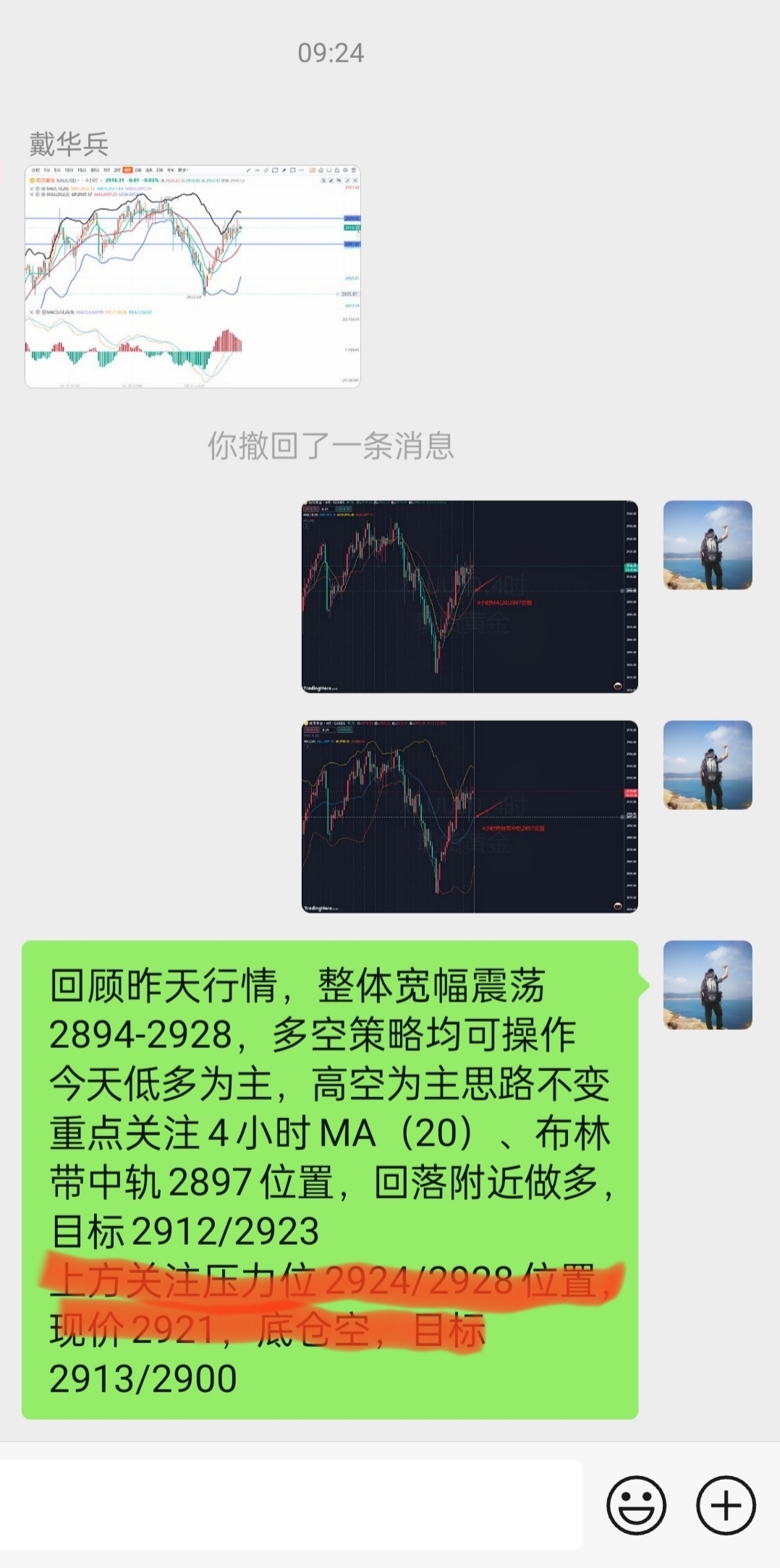落实交易计划,2924/2921空单,一单止盈30分钟布林带下轨2914,留底仓