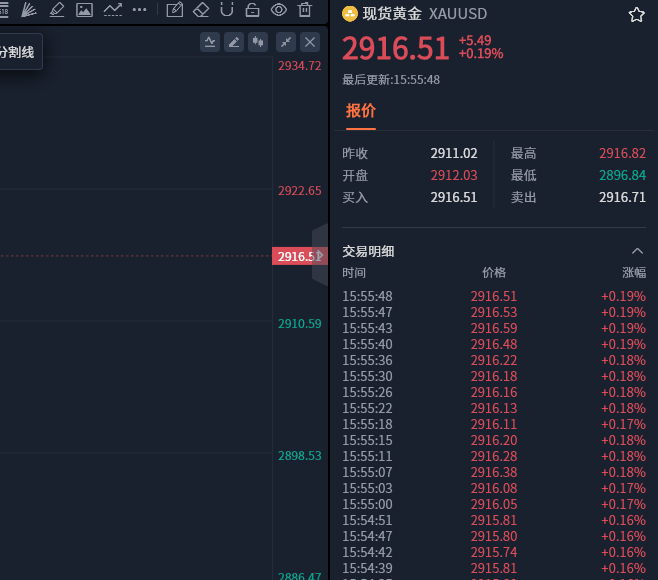 $黄金/美元(FORPM|XAU)$ 欧盘黄金:早间多单点位偏保守没能进场,行情目前还是处于震荡区间,现在2916上方做空,防守:2924,目标看2905