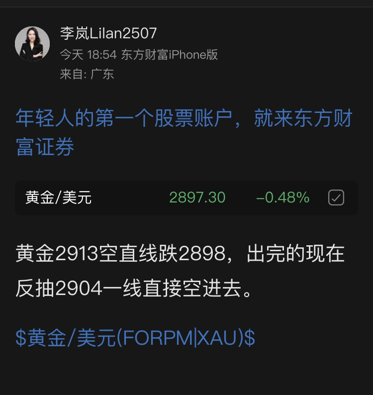 都说了黄金再下来的话就要往下走了,不要看黄金一直在震荡,但今天一直下探低位,29