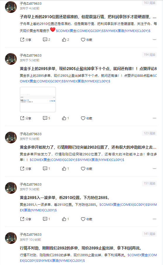 因受到神秘的力量控制着,子舟今晚行情无法提示,关注子舟这号,每天为大家分享思路,今日做了三单,小小盈利160点。这只是开始,来吧,朋友们,点点关注,跟上脚步!!COMEX黄金(COMEX|GC00Y)$$NYMEX原油(NYMEX|CL00Y)$