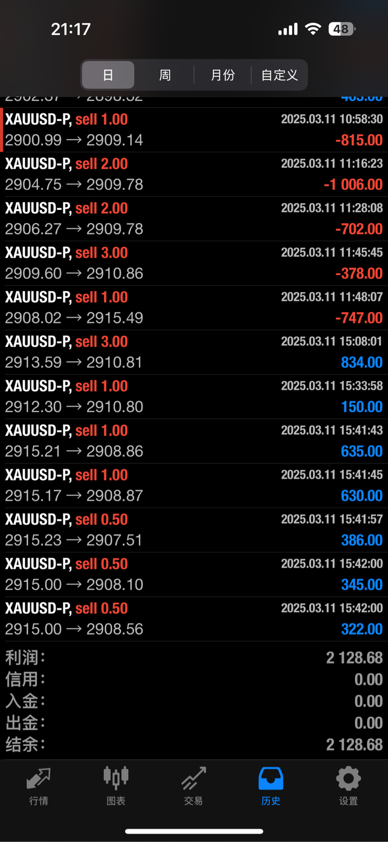 今日以为要潦潦草草亏损48美金收场没有想到一波行情都做回来了,整体不错今天目前最
