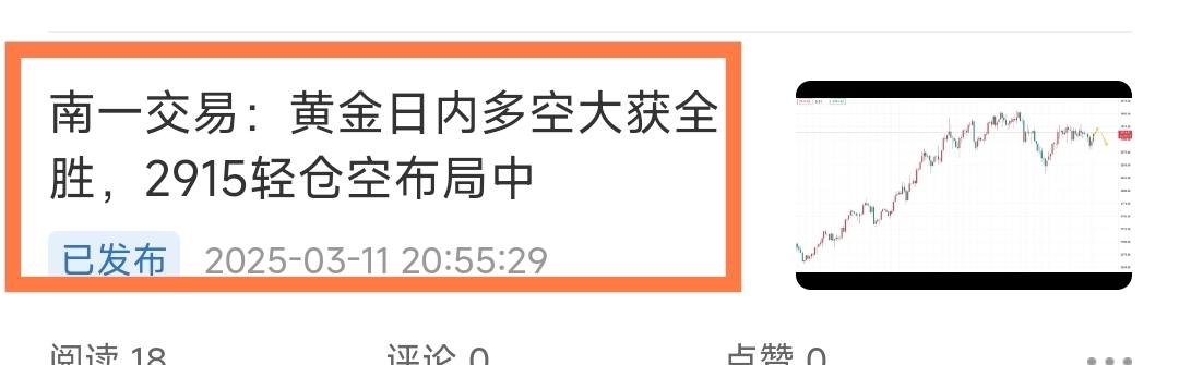南一交易:真金不怕火炼,你们见证实力!南一晚间2915附近公开做空黄金,2907