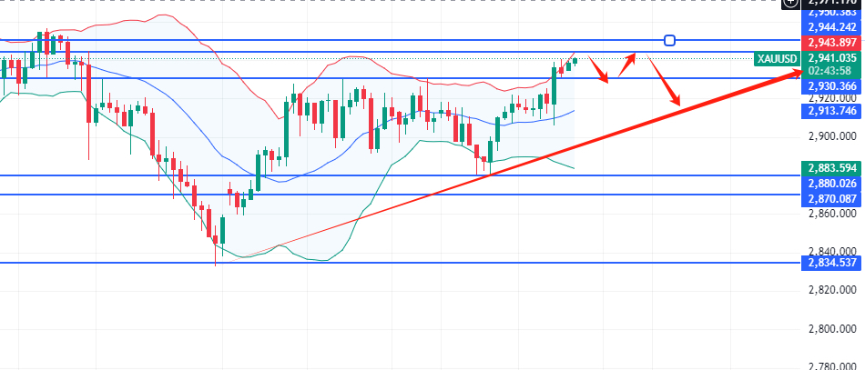 2025.3.13黄金操作策略:2941附近轻仓空,如到2945附近加仓空,2950保护,目标2935-2931-2927