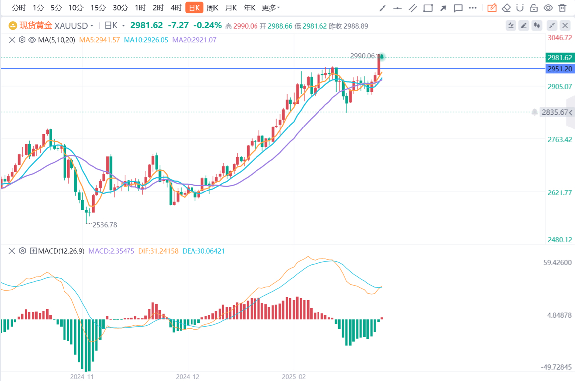 周四黄金在特朗普2.0贸易战持续发酵下【美股美元齐跌】/黄金单边拉伸50$+持续
