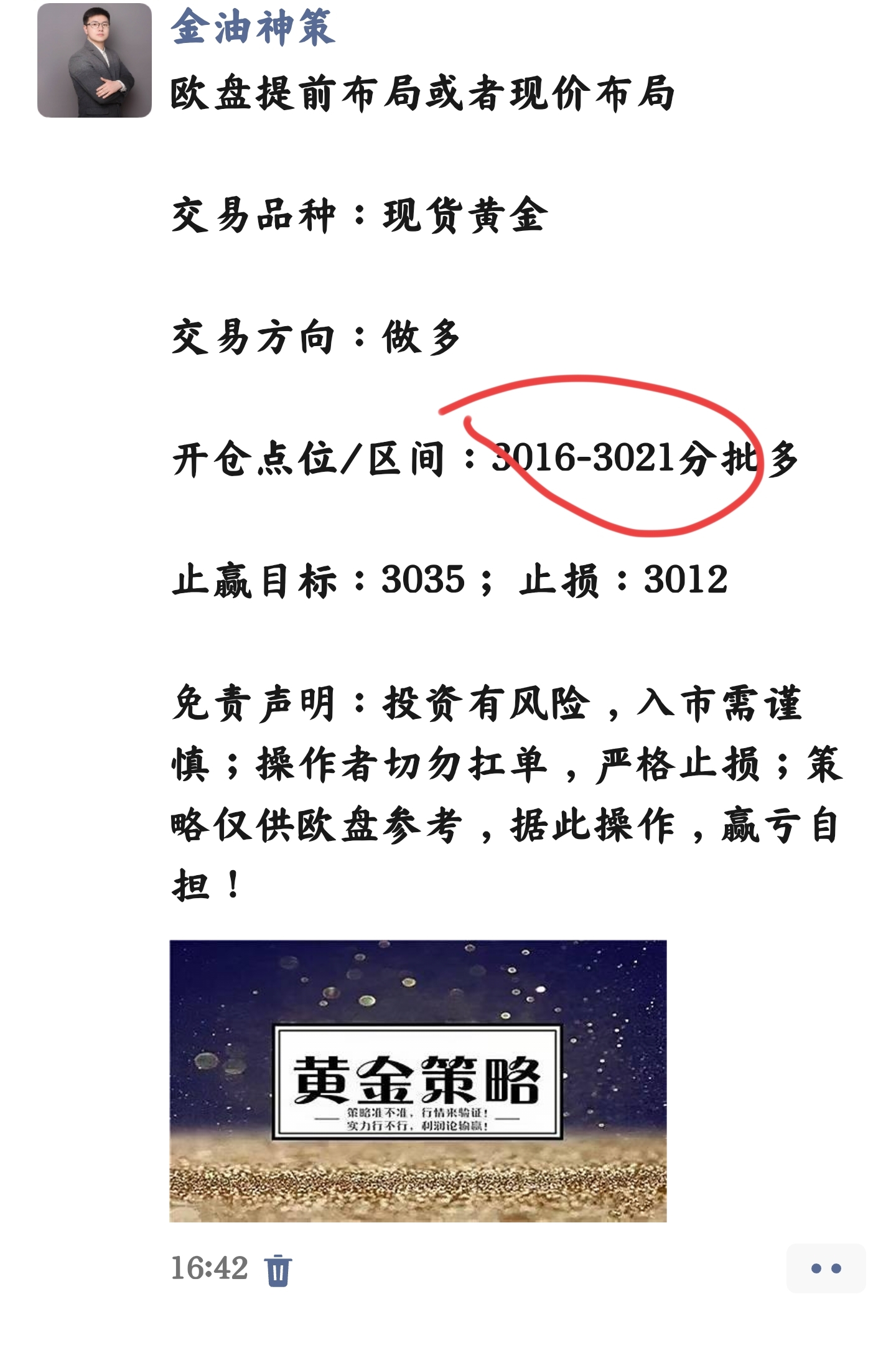 提示:黄金现报3035一线,欧盘给出3021附近多单,遗憾差一点进场;如有302