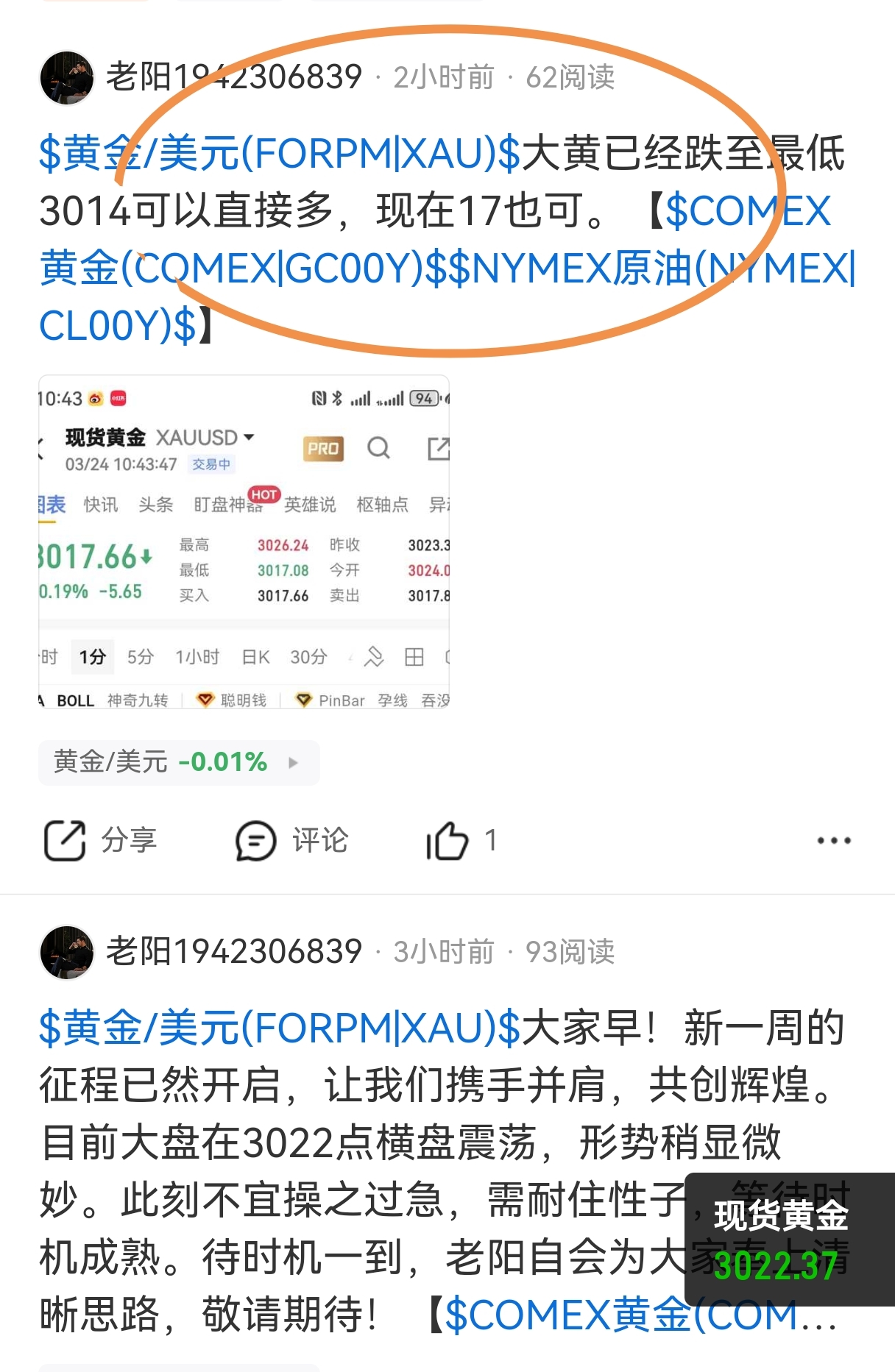 $黄金/美元(FORPM|XAU)$ 本周首胜十pan走人。那么有根老阳的现在22可以走了,想继续上看建议减仓。【$COMEX黄金(COMEX|GC00Y)$ $NYMEX原油(NYMEX|CL00Y)$ 】