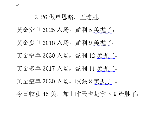 3/26的工作总结,又是连胜的一天,再次拿下5连胜,又是收获满满的一天,收获45美。今天就不布局做单啦,落袋为安,明天见。