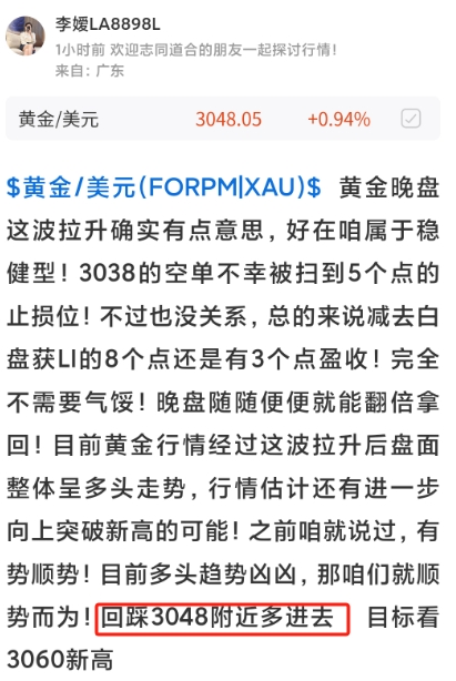 晚盘3048位多单布局,先盘面给到3052位,小拿4个点,弥补回来!多单先出来!