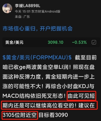 黄金午盘3102位空单布局,盘面给到3093位!顺势收ge9个点!盘面反抽31