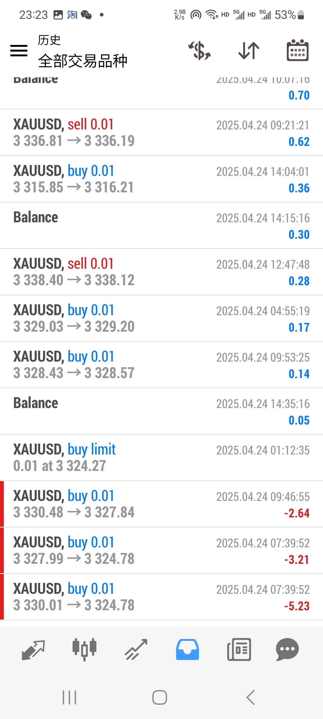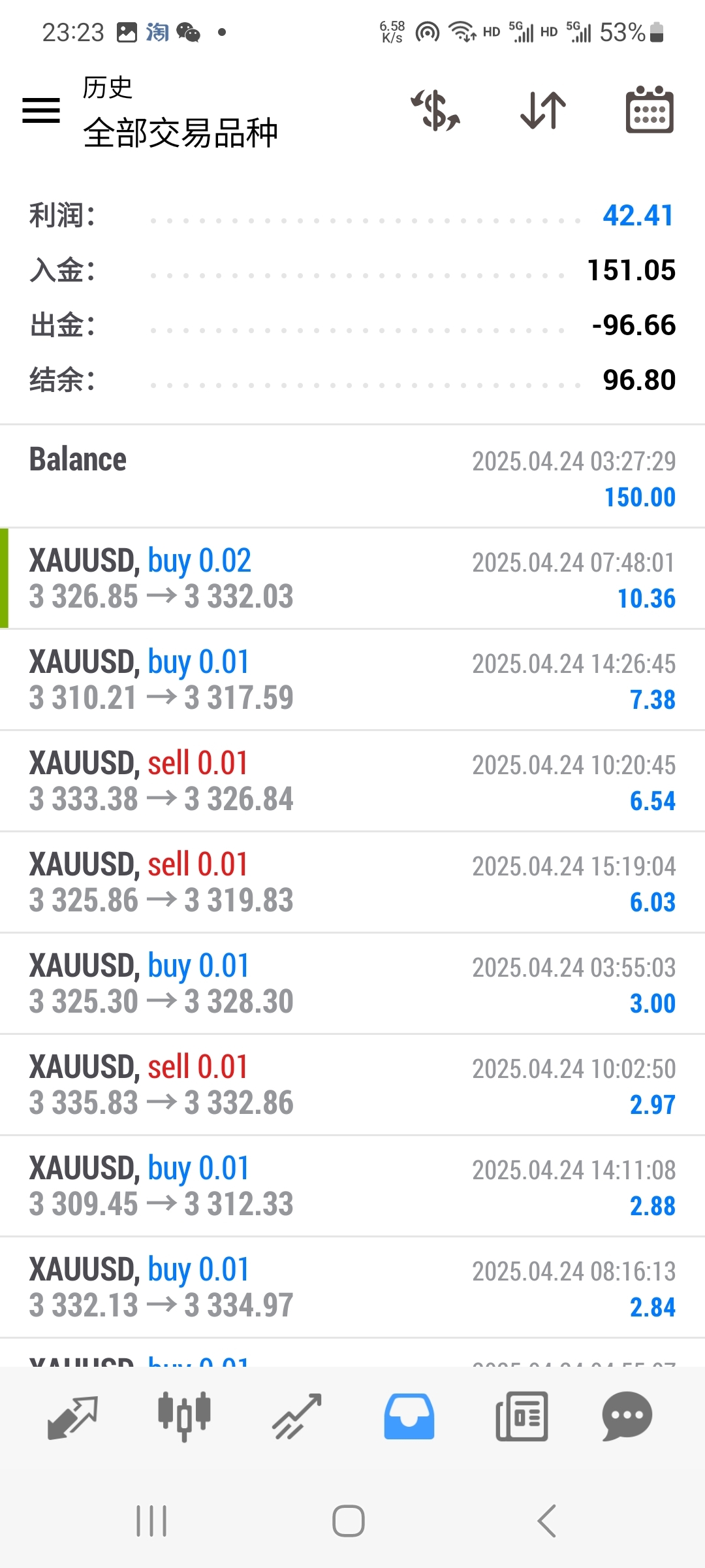 $黄金/美元(FORPM|XAU)$ 爆仓第二天,分析原因,一个浮亏加仓摊平成本,不舍得止损遇到单边被大损,损完心态爆炸直接重仓梭哈清零。重新入150刀现在只做确定性高形态,今天17盈3损,平均每单挣3美元,每次0.01手,设好损盈决不扛单,爆仓怕了,0.01手都拿不住,没到位就平,早上手欠了一单0.02手