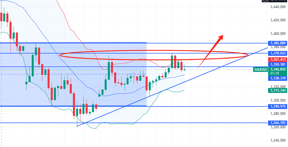 计划不变依旧看多头上行,3346轻仓附近多,回踩3335位置加仓,防守综合看3325位置,目标看3375-3388-3401(近期黄金迎来巨震波动,建议以轻仓大幅度的防守位置较为正确)