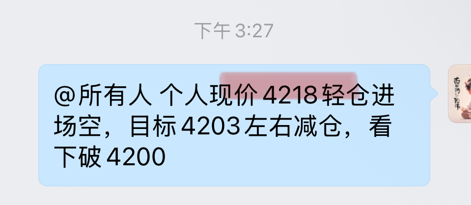 开搞继续4218进场空,4203减仓,而下破4200的话继续拿住后调整保护位置即