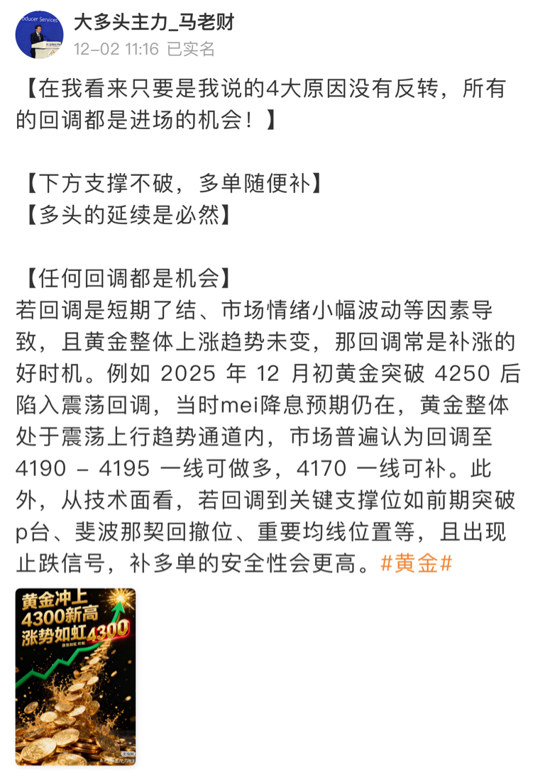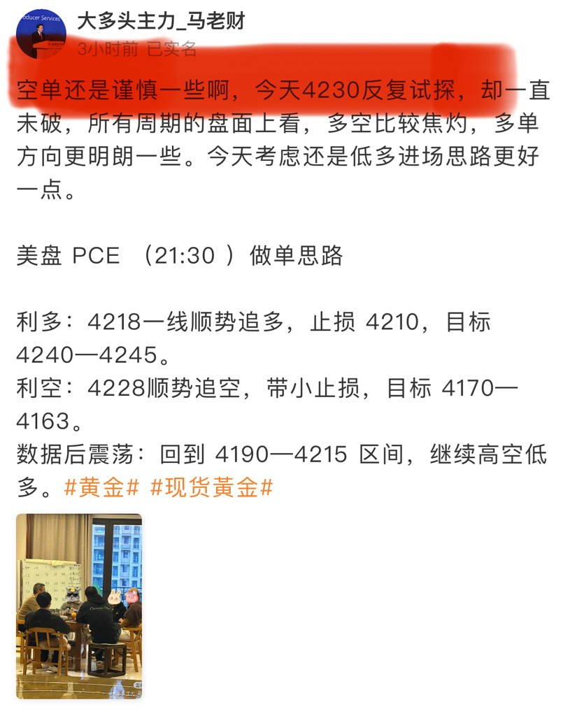 多单看涨思路不变,下方所有提示的多单底仓,均持有等待,我们的目标4300,不抵达不离场。