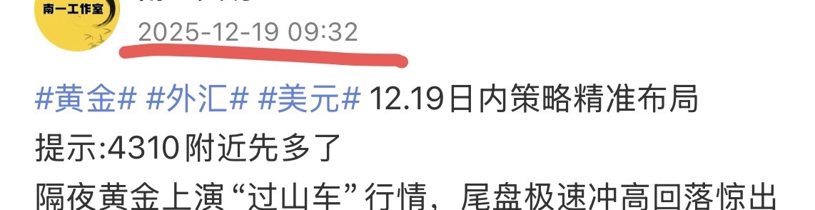 南一交易:实力见证!黄金早上4310公开多又躺赢17点周五继续维持日内思路观点!