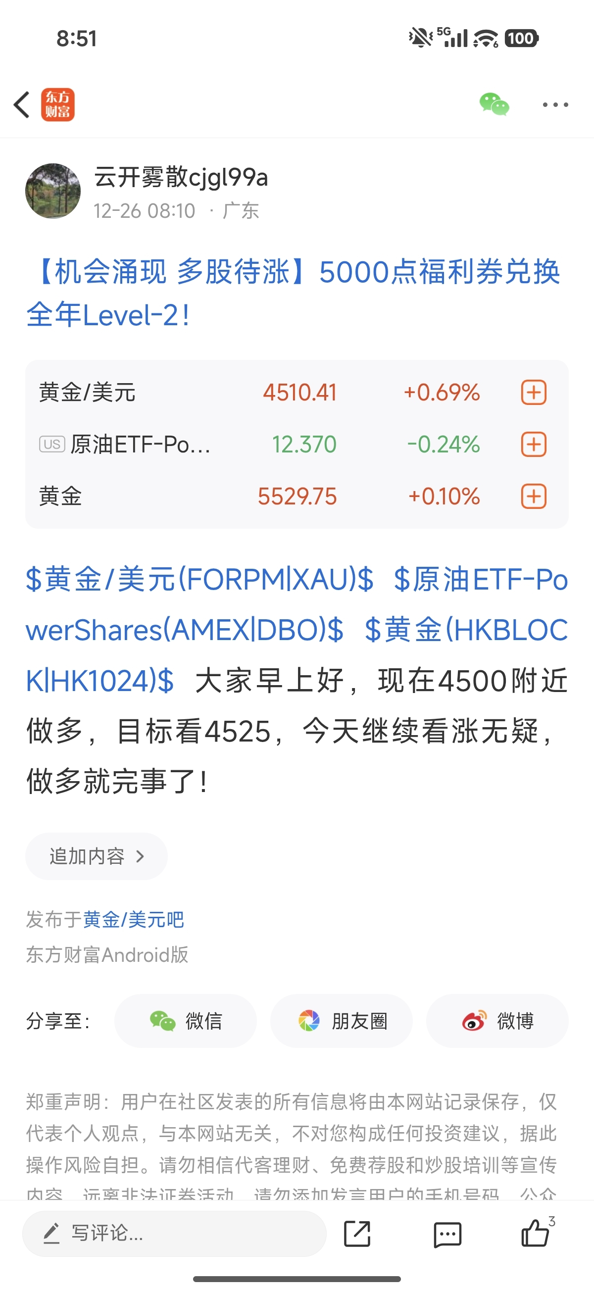 温馨提示: 1.根据《证券法》规定,禁止编造、传播虚假信息或者误导性信息,扰乱证券市场;2.用户在本社区发表的所有资料、言论等仅代表个人观点,与本网站立场无关,不对您构成任何投资建议。用户应基于自己的独立判断,自行决定证券投资并承担相应风险。《东方财富社区管理规定》