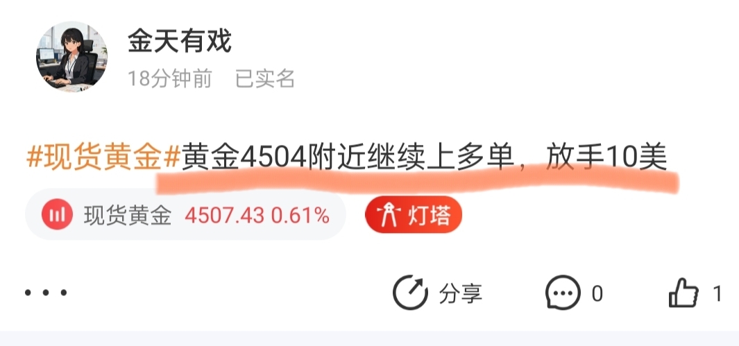 $黄金/美元(FORPM|XAU)$ 周五收官,feng险大保持谨慎。做好风控。 4514短线离厂,收100点,一手建苍就是1000美,简简单单