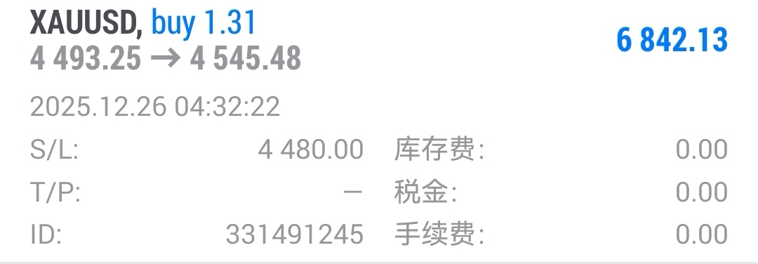 现价黄金给到了4545,恭喜在4493跟上做多的朋友们,收米52美金标准一手5200美刀,全部离场过愉快周末!下周继续奋斗!
