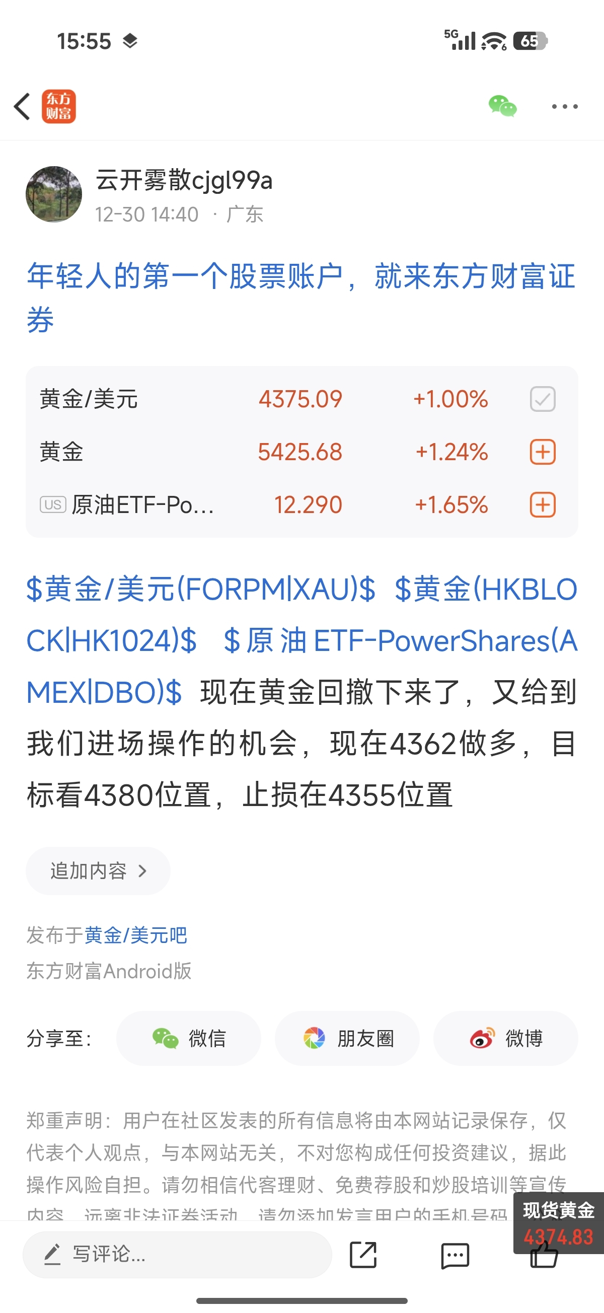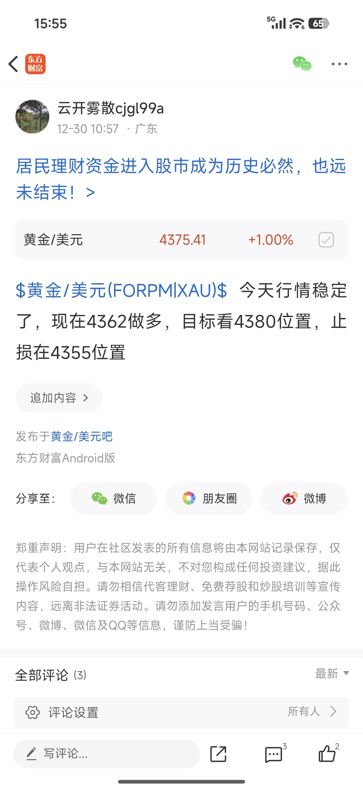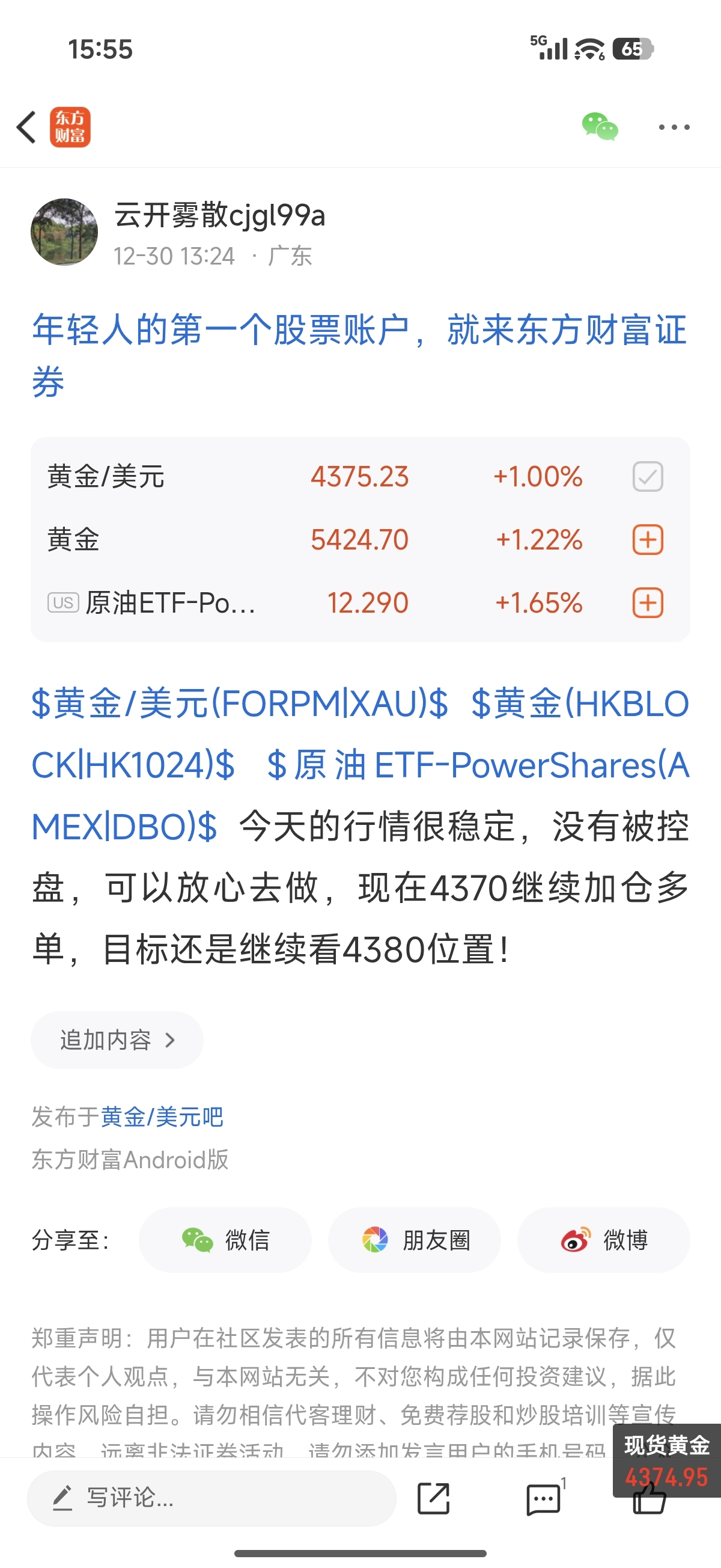 温馨提示: 1.根据《证券法》规定,禁止编造、传播虚假信息或者误导性信息,扰乱证券市场;2.用户在本社区发表的所有资料、言论等仅代表个人观点,与本网站立场无关,不对您构成任何投资建议。用户应基于自己的独立判断,自行决定证券投资并承担相应风险。《东方财富社区管理规定》