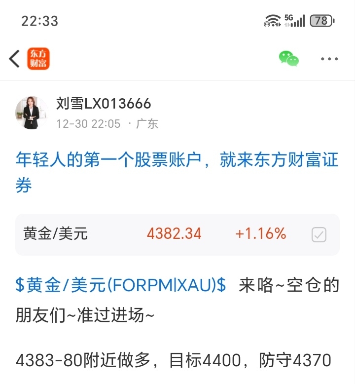 $黄金/美元(FORPM|XAU)$ 美盘黄金4378和4381多单上来4391这里全部可以出来了,激进的人就减仓看目标方向,稳健的就跑了,晚上黄金继续回调给到空仓朋友们进场位置,果断进场做多,又是和大家吃上肉加餐的一天,稍后小雪就不参与了,你们做单要记得带好防守,没点关注的点上~每天都是现价单,我们明天见