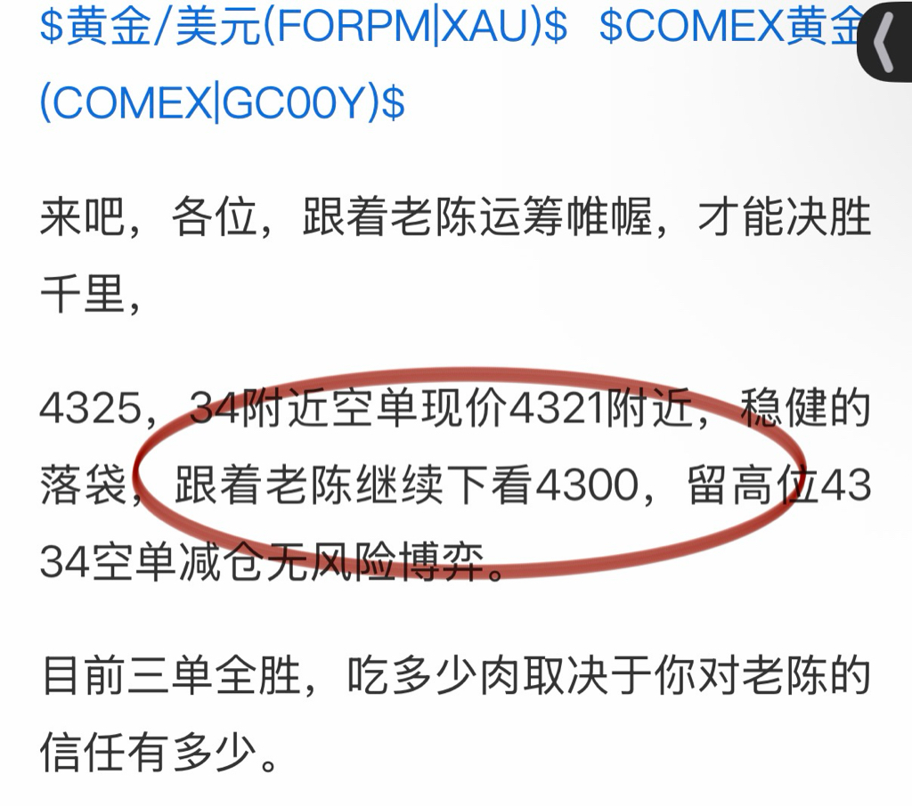 来来来,燥起来了燥起来了,留4334高位空单的同学,看4300是不是相差无几?4